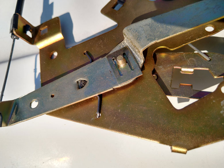 Der Luftverteilerkasten wurde im Zuge der genannten Umstellung ebenfalls modifiziert, und zwar wurde das Stehblech zur Befestigung des Bowdenzugs von 10 mm auf 30 mm verlängert. Hierdurch bestehen mehr Einstellmöglichkeiten für den Bowdenzug. Neue und alte Ausführung des Stehblechs: