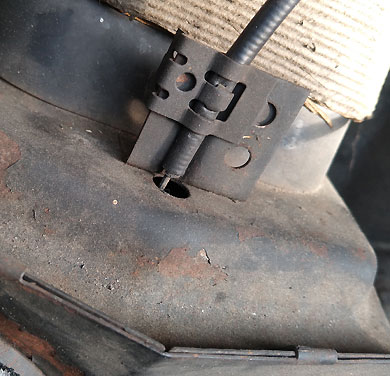 Durch Betätigen des Heizungshebels kann nun überprüft werden, ob die Filzklappe ihre Endlagen vollständig erreicht oder z.B. einen Zentimeter davon entfernt stehen bleibt. Sollte eine Endlage erreicht werden, die andere jedoch nicht, kann dem normalerweise durch Verschieben der Bowdenzughülle abgeholfen werden. Hierfür entfernt man einfach die Halteklammer am Stehblech auf dem Luftverteilerkasten, verschiebt den Zug nach Bedarf und clipst sie danach wieder auf.