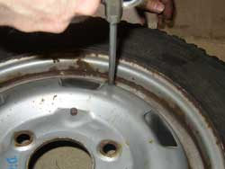 Bei Rädern mit Schlauch findet sich häufig Rost um das Ventilloch herum. Diese Stelle muss gründlich entrostet werden.
