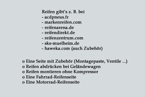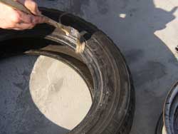 Reifen und Felge müssen zur Montage mit Montagepaste (Montierpaste) bestrichen werden (angeblich tut es auch Schmierseife). Die Gleitwirkung des Mittels darf jedenfalls nur kurz bestehen, da ein Durchrutschen des Reifens auf dem Rad bei starkem Bremsen zu einem Abreißen des Schlauchventils führen könnte.
