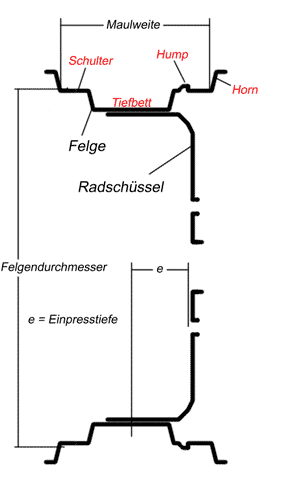 Der Druckpunkt (D) muss in jedem Fall direkt an der Felgenschulter liegen !