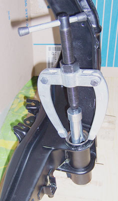 Zum Ausziehen der Außenringe der Kegelrollenlager der Schwingen