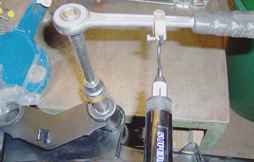 Einstellen der Lagervorspannung Nach der Montage aller benötigten Teile wird die Scharnierbolzen-Mutter mit 100...120 Nm angezogen (Drehmoment-Schlüssel!) und daraufhin die Lagervorspannung ermittelt. Die richtige Vorspannung ist für die Lebensdauer des Lagers und auch für die Funktion der Variomatic von entscheidender Bedeutung. Hierfür wird das Drehmoment gemessen, welches das vorgespannte Lager der Drehbewegung entgegensetzt.