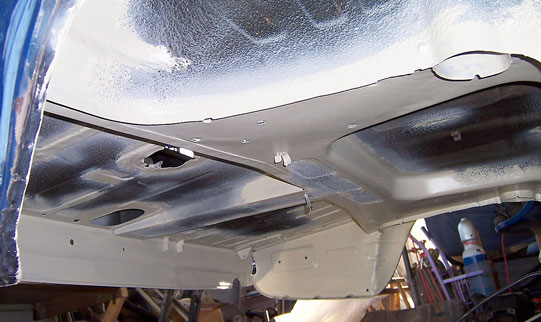 Wer keine Möglichkeit hat, seinen Unterboden trockeneis- und/oder sandzustrahlen, sollte viiel Zeit für das gründliche Abschleifen des Unterbodens einplanen ! Im Anschluss habe ich Unterboden und Hohlräume mit Fertan behandelt, alles gründlich abgewaschen und schließlich einen normalen Lackaufbau vorgenommen. Die Hohlräume des Hecks wurden nach dem gründlichen Austrocknen mit Mike Sanders behandelt, der Unterboden mit Wachs.