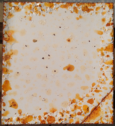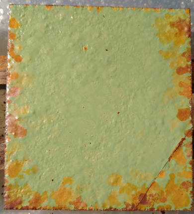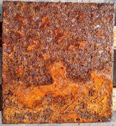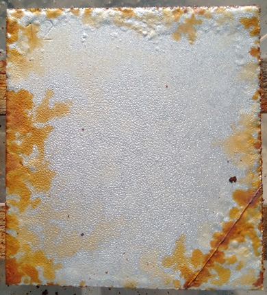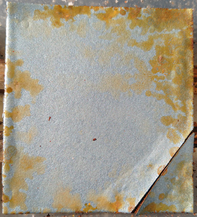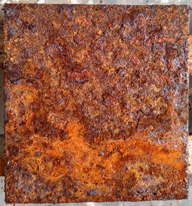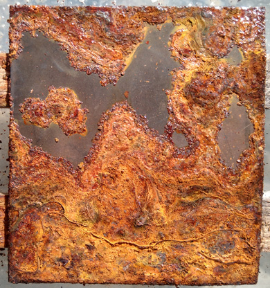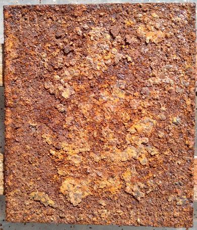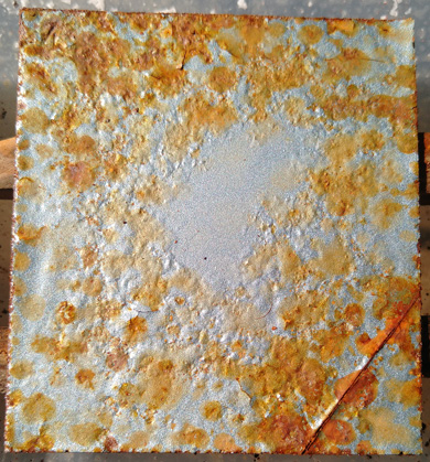 #8 Rostiges Blech, mit Phosphorsäure entrostet und #9 idem, mit Salzsäure entrostet