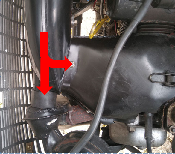 Falls die Fixierschraube des Kaltluftzugs im Wasserkasten festgerostet