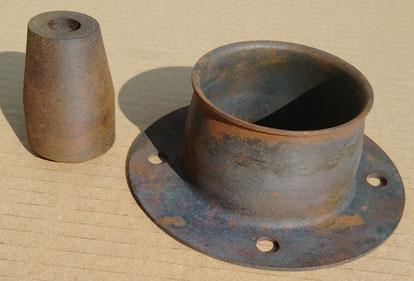 In der Ausgabe 12/1972 gibt es den Aufhängeblock nur zusammen mit der unteren Scheibe Nr. 9 (892 339) unter einer kombinierten Ersatzteilnummer. Gemeint ist hier vermutlich der Aufhängeklotz 225 712, der in meinen Onderdelenboekjes nicht einzeln erwähnt wird. Die untere Scheibe gehört meines Erachtens jedoch ausschließlich zu der niedrigeren Ausführung 892 839, damit diese ungefähr die gleiche Bauhöhe erreicht wie 225 712. Die obere Scheibe So (siehe Bild) konnte ich bei keinem der von mir untersuchten Aufhängeblöcke nachweisen. Wer weiß hier Genaueres? Zum Zerlegen spannt man die gebrauchten Aufhängeblöcke in einen großen Schraubstock ein. Der Kopf des Schraubenbolzens wird in ein Rohrstück gepresst.
